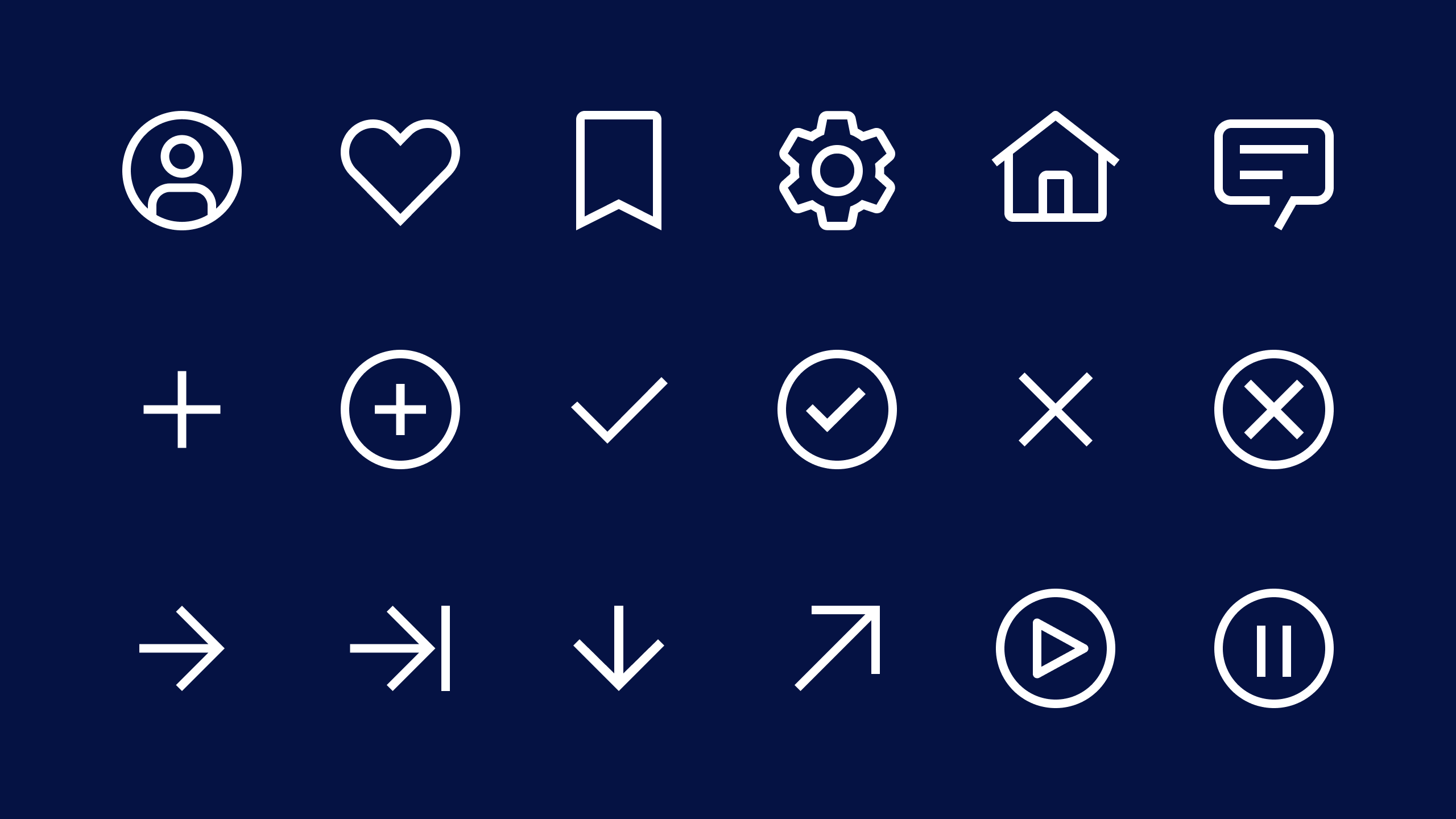 Iconography is complementary to the rest of the design language, it borrows from typography and illustrative frameworks, helping to perpetuate a recognisable brand throughout all interactions while also providing a clear and simple interface for users.