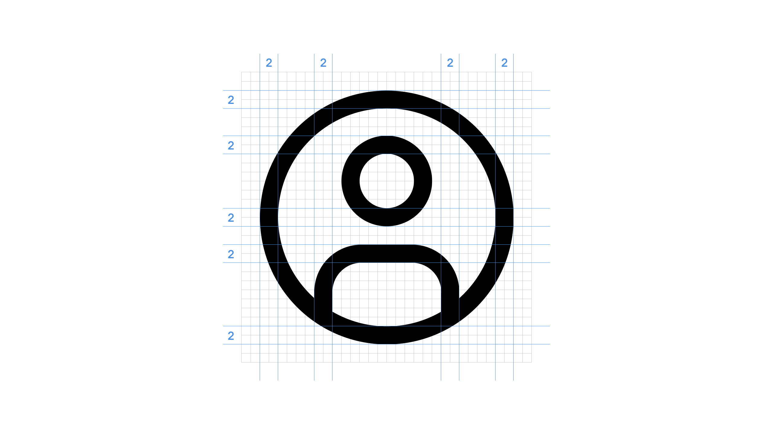 The grid incorporates a 2px padding to ensure that icons maintain their intended scale and preserve the surrounding white space upon export. The padding should only be utilized to extend the artwork for added visual emphasis or to include specific details necessary for defining the content, significance, or character of the icon.