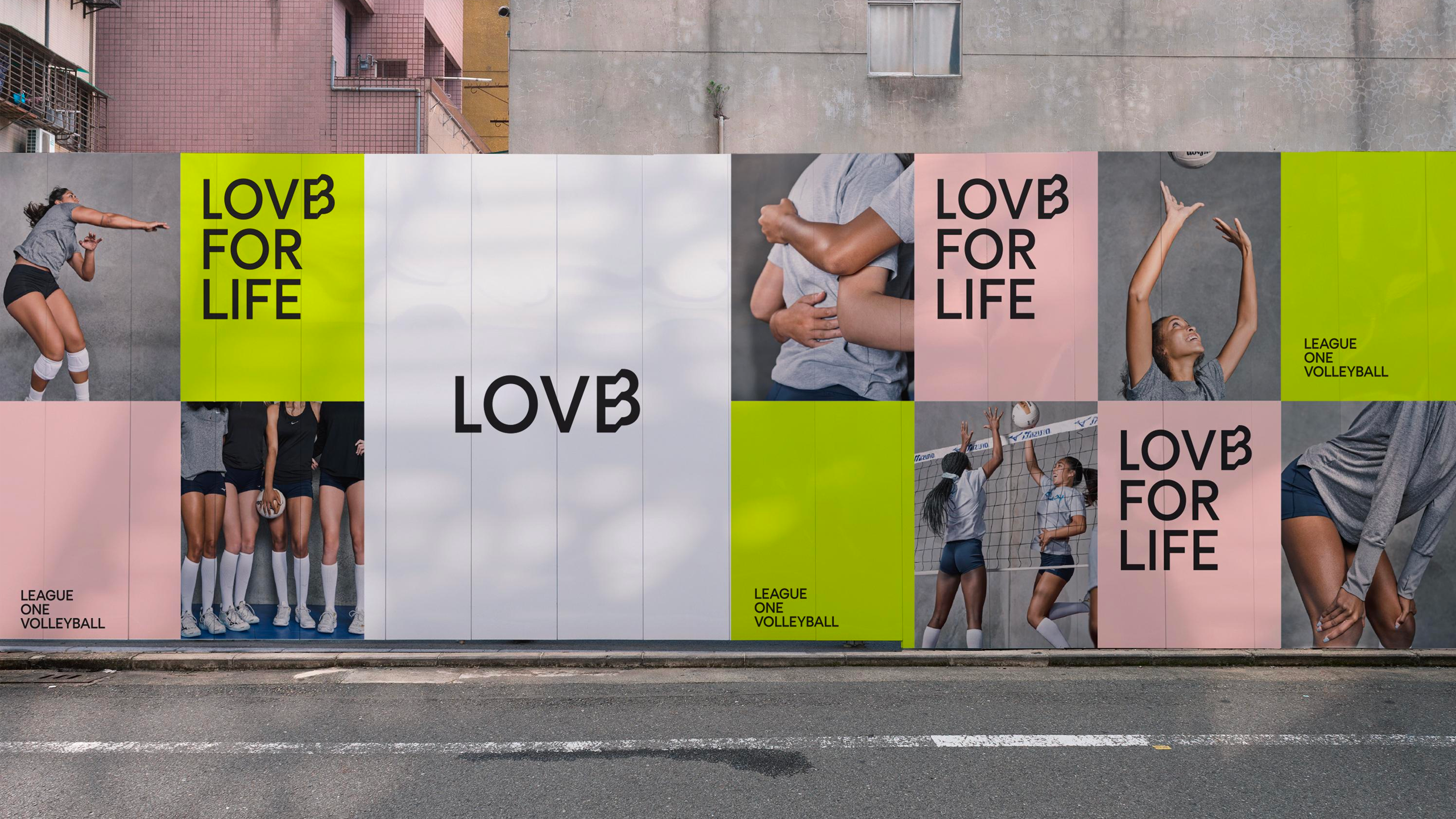 To ensure integrity and visibility, the LOVB wordmarks should be kept clear of competing text, images, and, graphics. They must always be surrounded on all sides by adequate clear space.