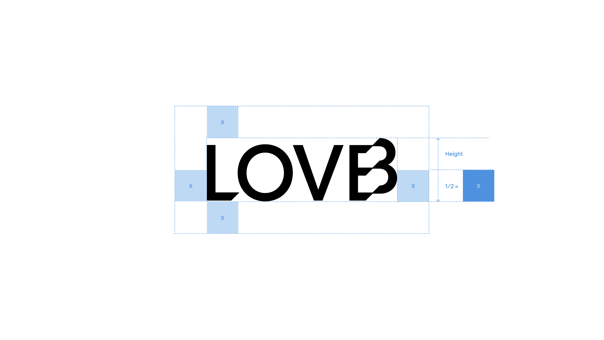 For the wordmark that space is equal to “x” which is half the total height of the wordmark.