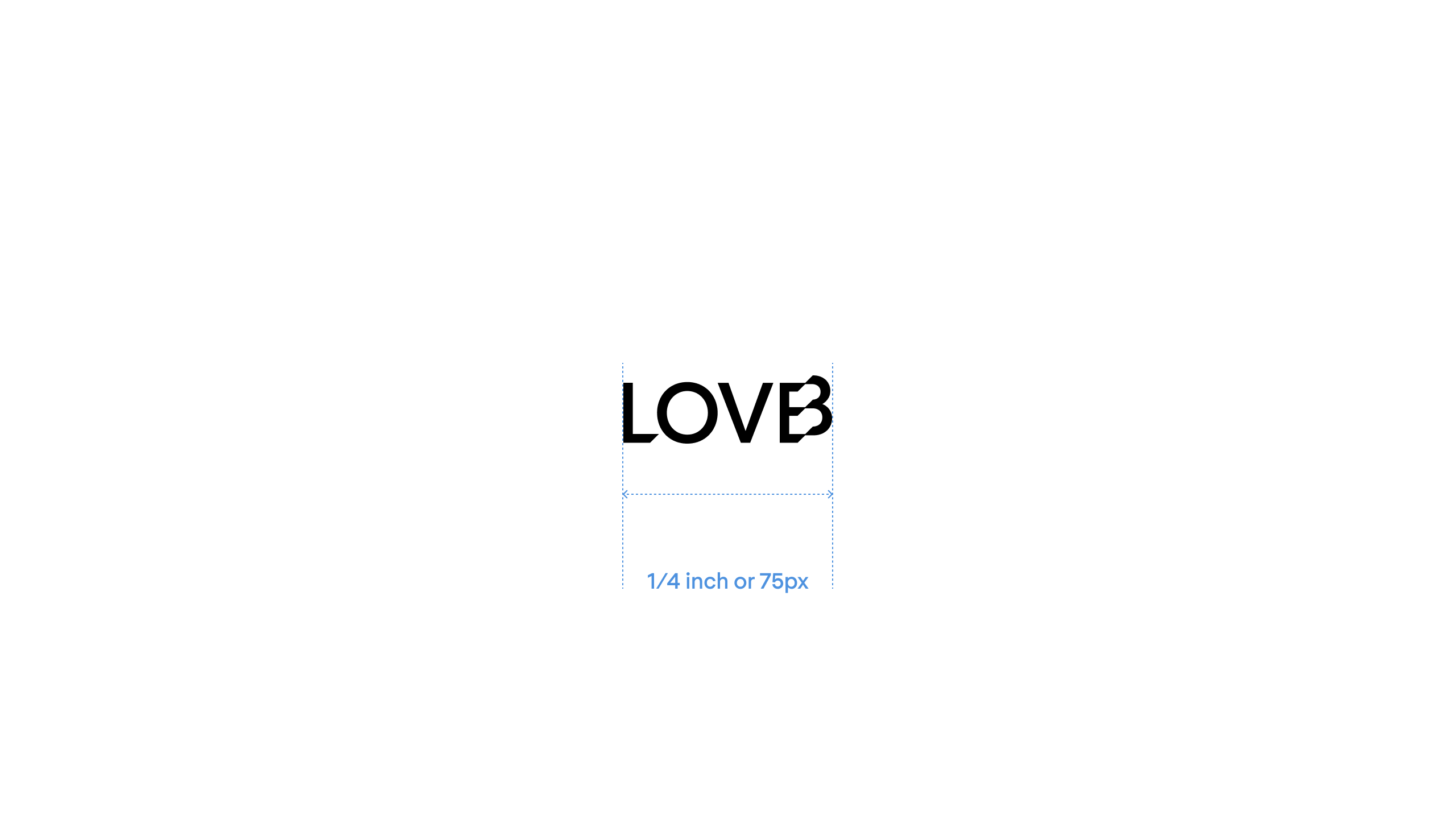 The LOVB wordmark should appear no smaller than 1/4 of an inch (6.5mm) in print or merchandise and no smaller than 75 pixels wide on screen.