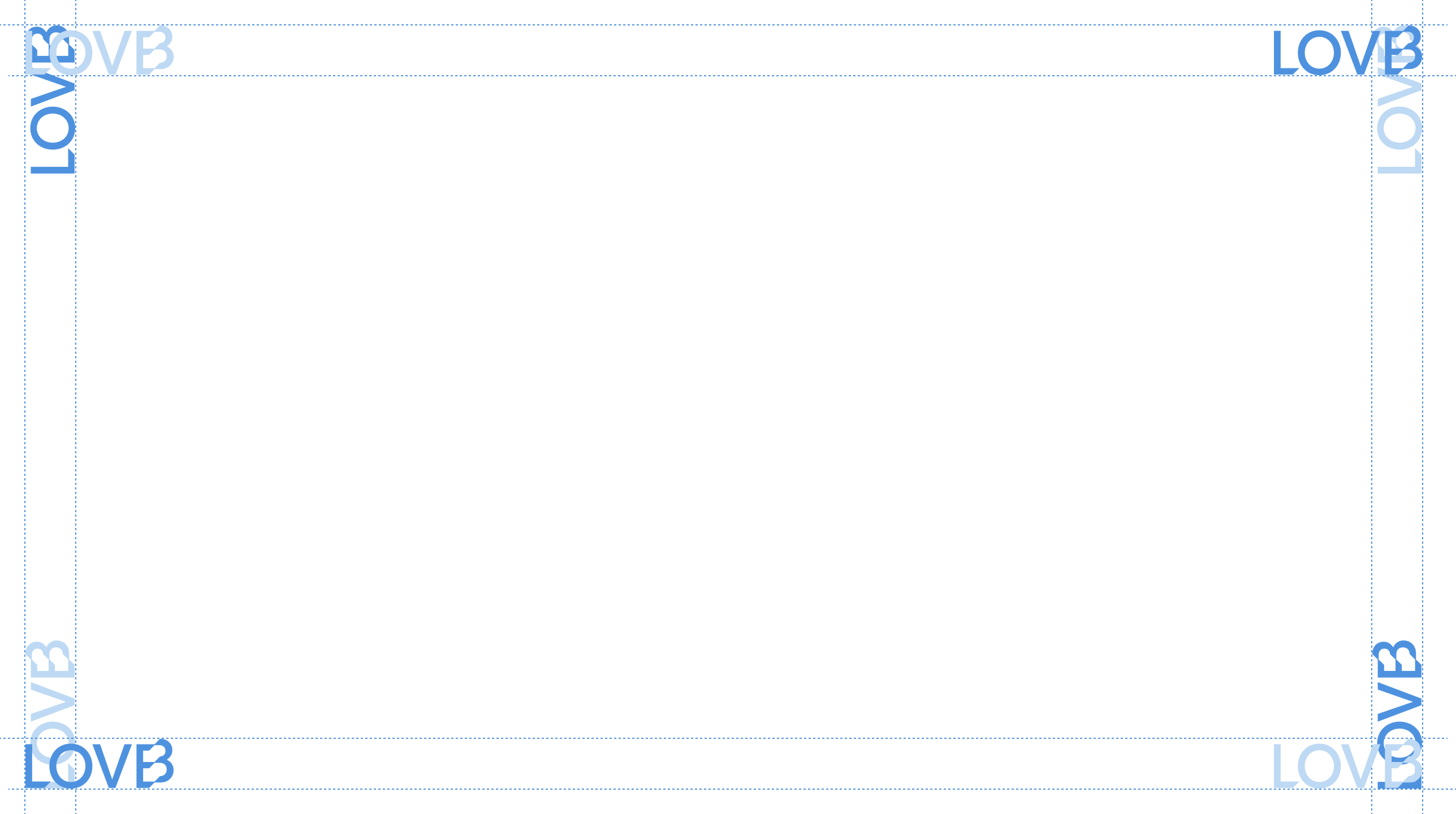 The LOVB Wordmark can be positioned in either of the four corners of the page. It can either be positioned horizontally or vertically. When positioned vertically it should always be with the L at the bottom.